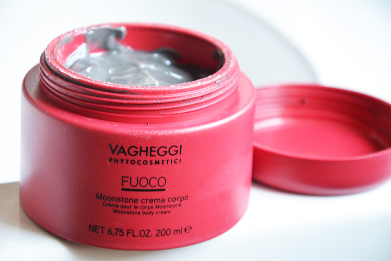 Prodotti per il corpo? Torna Vagheggi con la sua crema corpo Moonstone della linea Fuoco. Non spaventatevi, il colore non è bianco come siamo abituati, bensì grigio scuro proprio per la presenza della Moonstone o anche detta la pietra di Afrodite. Si tratta di una crema anticellulite, modellante e ridensificante. La stra consiglio perchè è leggera, si assorbe subito e i risultati sono davvero visibili dopo poco tempo (pelle più soda al tatto e cuscinetti diminuiti!), ma anche solo per far invidia alle vostre amiche dicendo che voi avete la crema di Afrodite e loro no.